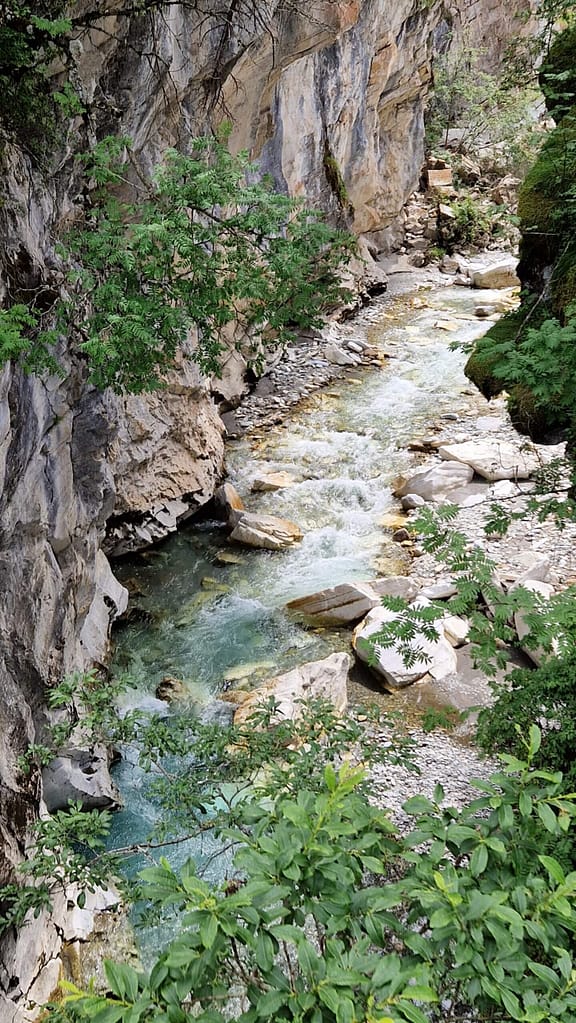 Am Steinbruch Andeer (mit dem schönen grünen Andeerer Granit) vorbei gelangen wir zur Fundstelle prähistorischer Zeichnungen. Zurückversetzt in frühere Zeiten erfahren wir in der Roflaschlucht die Geschichte eines Herrn, welcher um sein Restaurant attraktiver zu gestalten, selber einen Schluchtweg gesprengt hat. Nachdem wir das Gesicht im Fels gefunden haben, wandern wir entlang des Hinterrheins durch den Zauberwald bis Ausserferrera. (Hier: Abkürzung möglich 2h, per Bus) Auf dem Weg nach Innerferrera sichten wir eindrückliche Gletschermühlen im Hinterrhein.